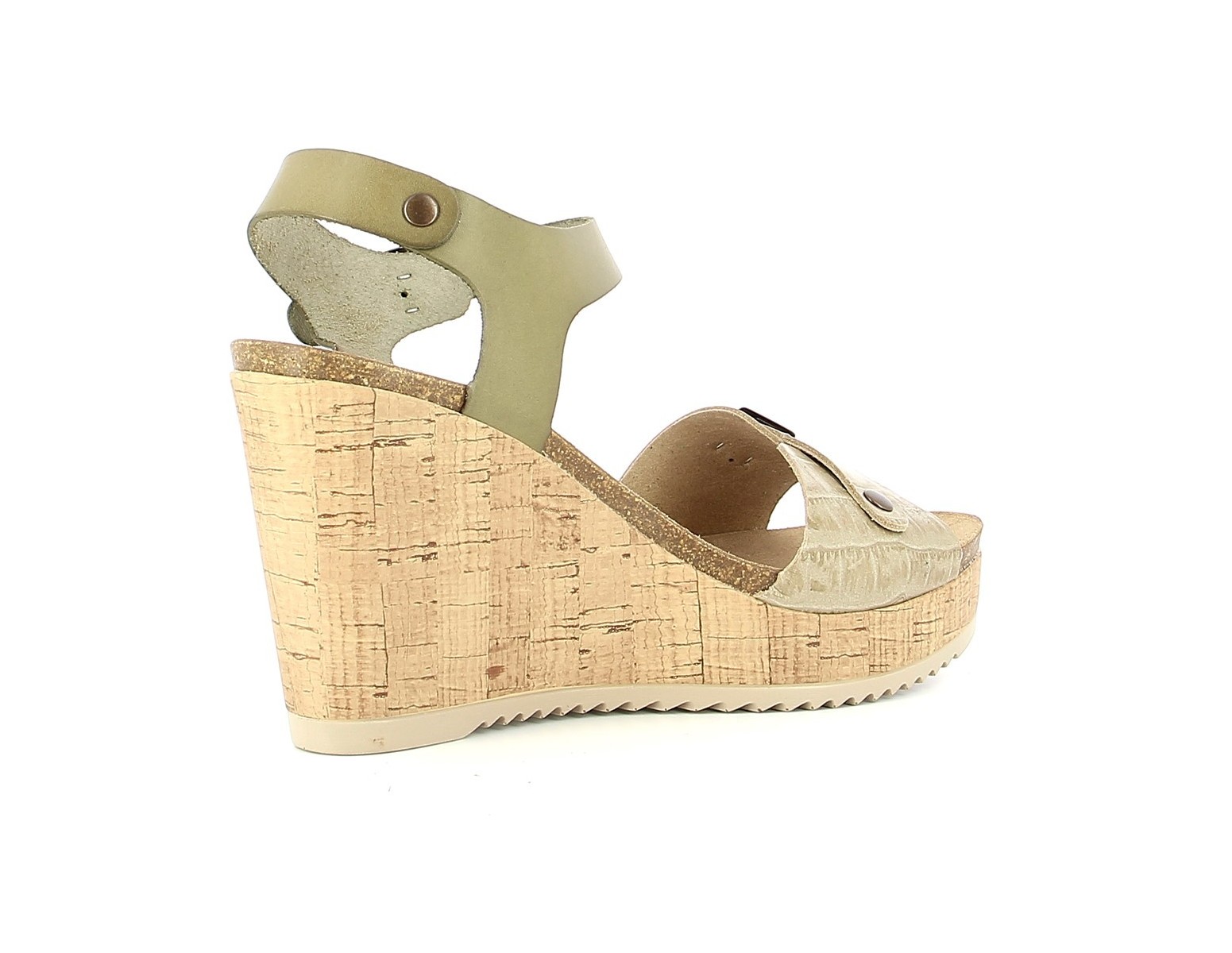 Nu-pieds Compensés PLANO en Couleur Kaki Mushroom pour Femme