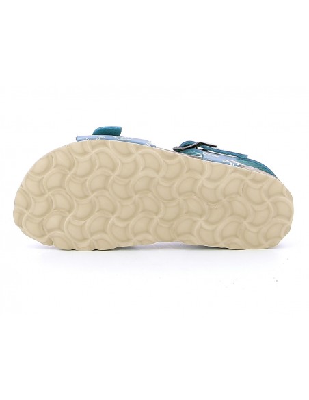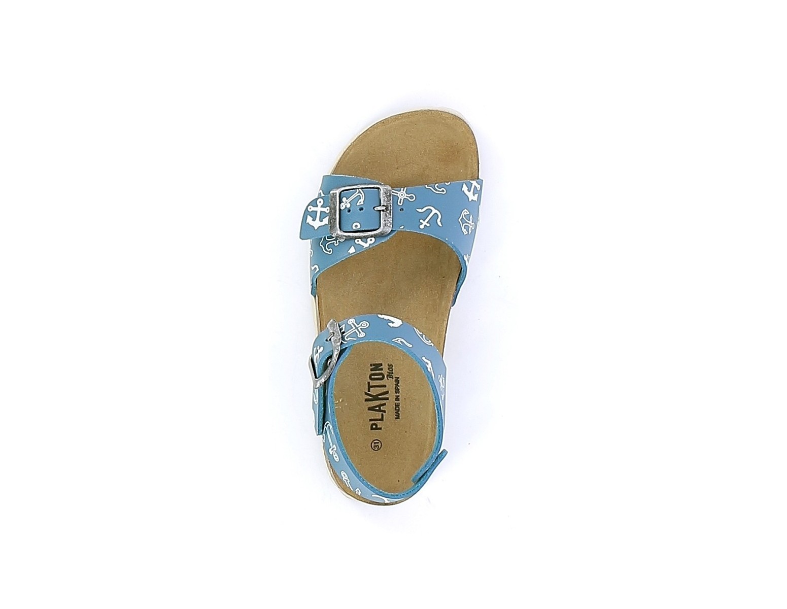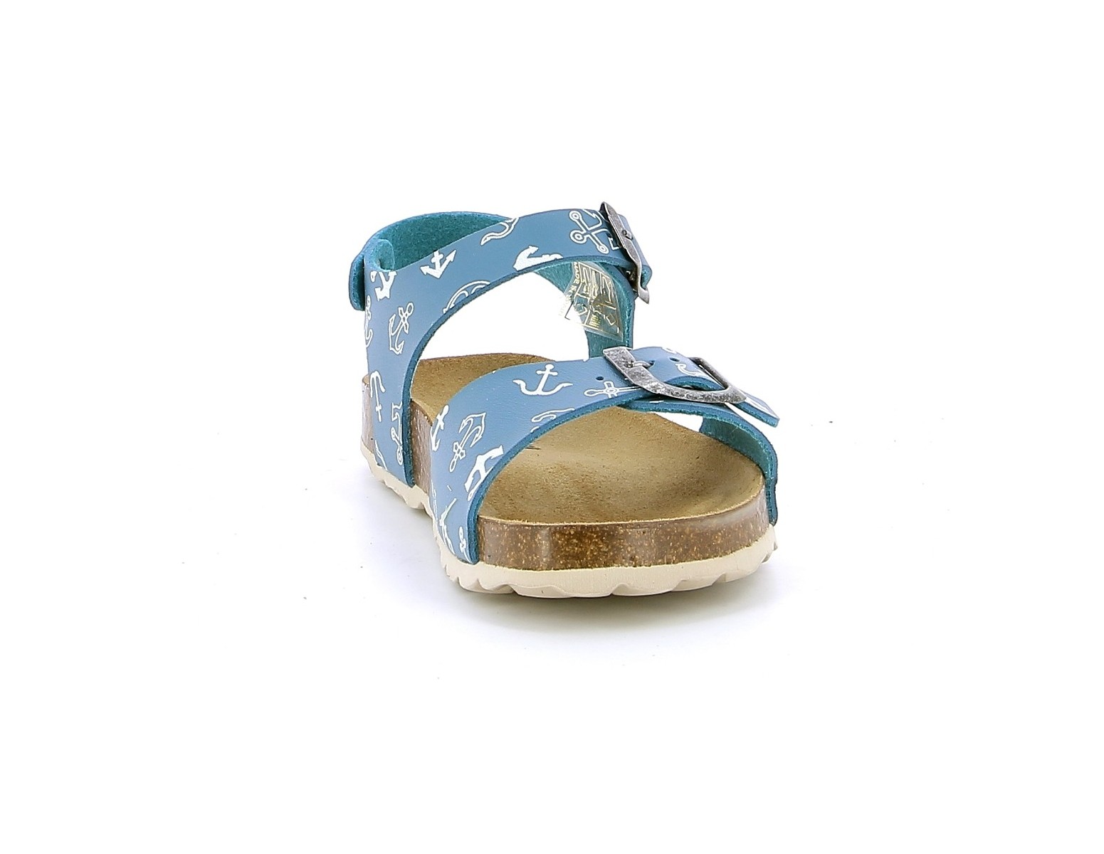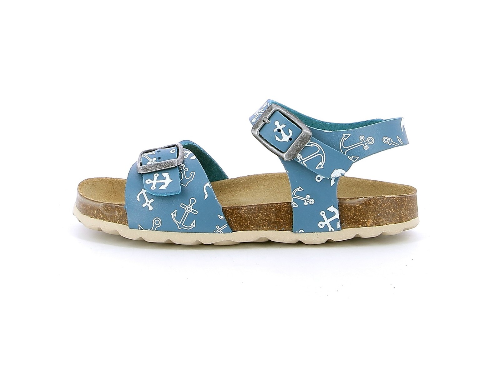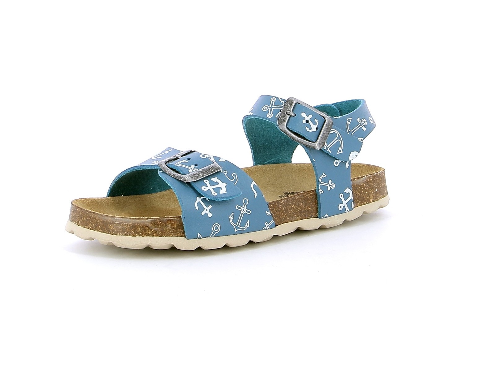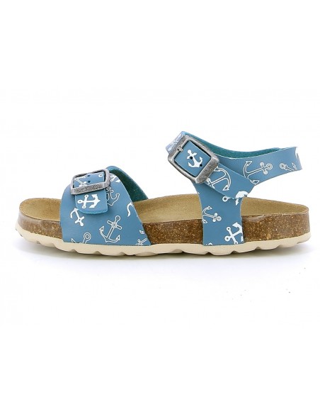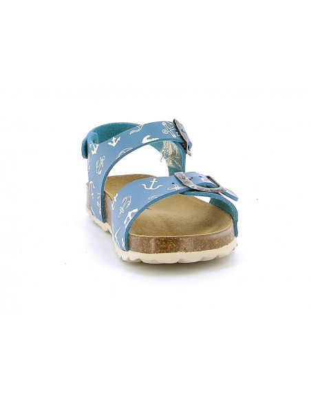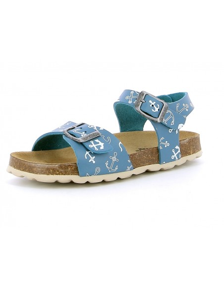 Sandale garçon PLAKTON LOUIS SIR en cuir bleu. Nu-pieds à semelle préformée en liège de type BIO, anatomique pour un confort optimum. Deux lanières avec boucles réglables, en cuir bleu avec des imprimés d'ancres de bateau, assurent un bon maintien. Un esprit marin pour nos petits navigateurs en herbe. Des modèles qui peuvent être une alternative, les jours d'été, pour les enfants qui portent habituellement des semelles aidant à maintenir la position du pied.